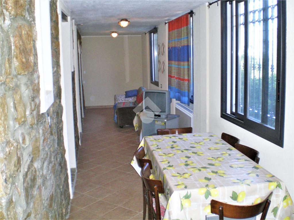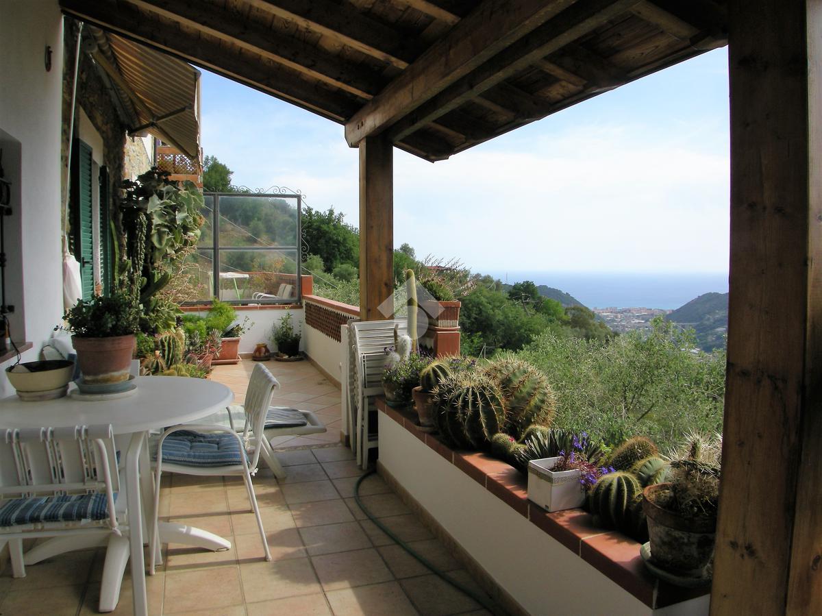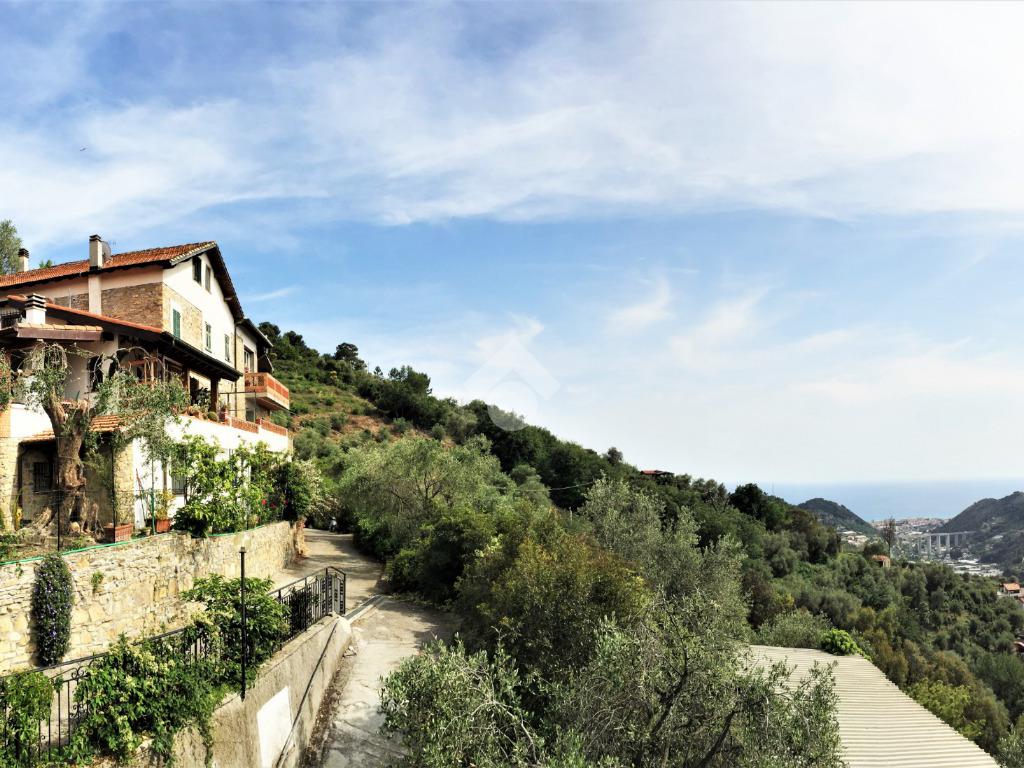 La proprietà è situata a 1,5 km dal paese di Vallebona e a 15 minuti dall'Autostrada. E' inserita in una posizione panoramica che permette di godere di una vista aperta e sul mare. L'accesso è comodo in quanto il terreno confina con la strada. La casa è articolata su quattro livelli. Al piano terra troviamoun ampio bilocale. Al primo e secondo piano troviamo l’appartamento più ampio con annessi terrazzi. Al quarto piano un'ampio sottotetto. Il riscaldamento è sia tramite stufa a pellet (per piano terre e parte dell’alloggio grande) sia tramite camino (per parte dell’alloggio più grande) collegati ai radiatori. Il terreno circostante a terrazze e ben attrezzato è di 1.400 mq.